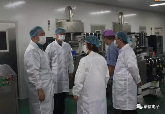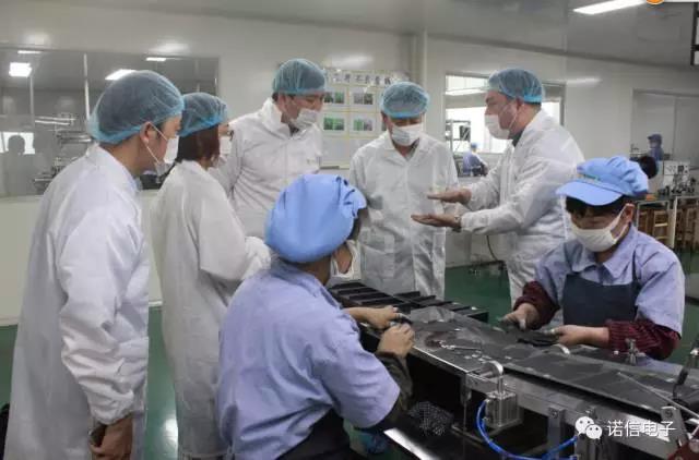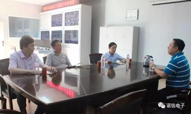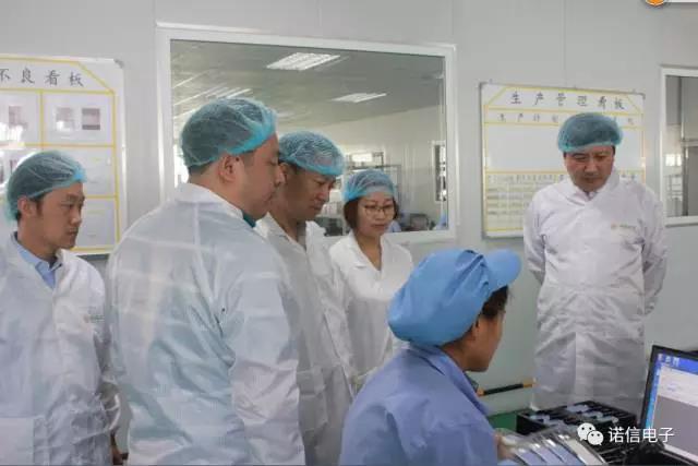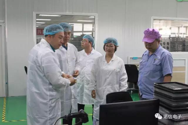 鶴壁市市商務(wù)局局長(zhǎng)藺其軍、經(jīng)濟(jì)技術(shù)開(kāi)發(fā)區(qū)招商局局長(zhǎng)邢玉富一行到諾信電子參觀考察