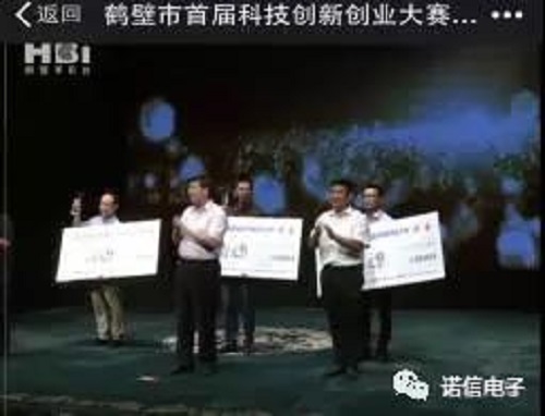 鶴壁市諾信電子有限公司 榮獲“鶴壁市首屆科技創(chuàng)新創(chuàng)業(yè)大賽決賽”三等獎