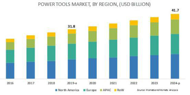 根據(jù)數(shù)據(jù),歐洲和美國是近年來電動工具增長最快的市場。接下來,亞太地區(qū)的電動工具市場將在預(yù)測期內(nèi)以最快的復(fù)合年增長率增長。