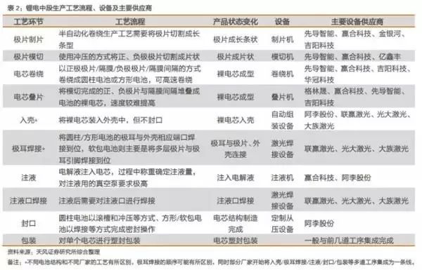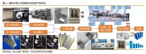 在鋰電池制造過程中,中間工序主要是完成電池成型,主要工藝流程包括制片、極片卷繞、模切、電池芯卷繞成型和疊片成型等。,這是目前國內(nèi)設(shè)備制造商激烈競爭的領(lǐng)域,約占鋰電池生產(chǎn)線價值的30%。